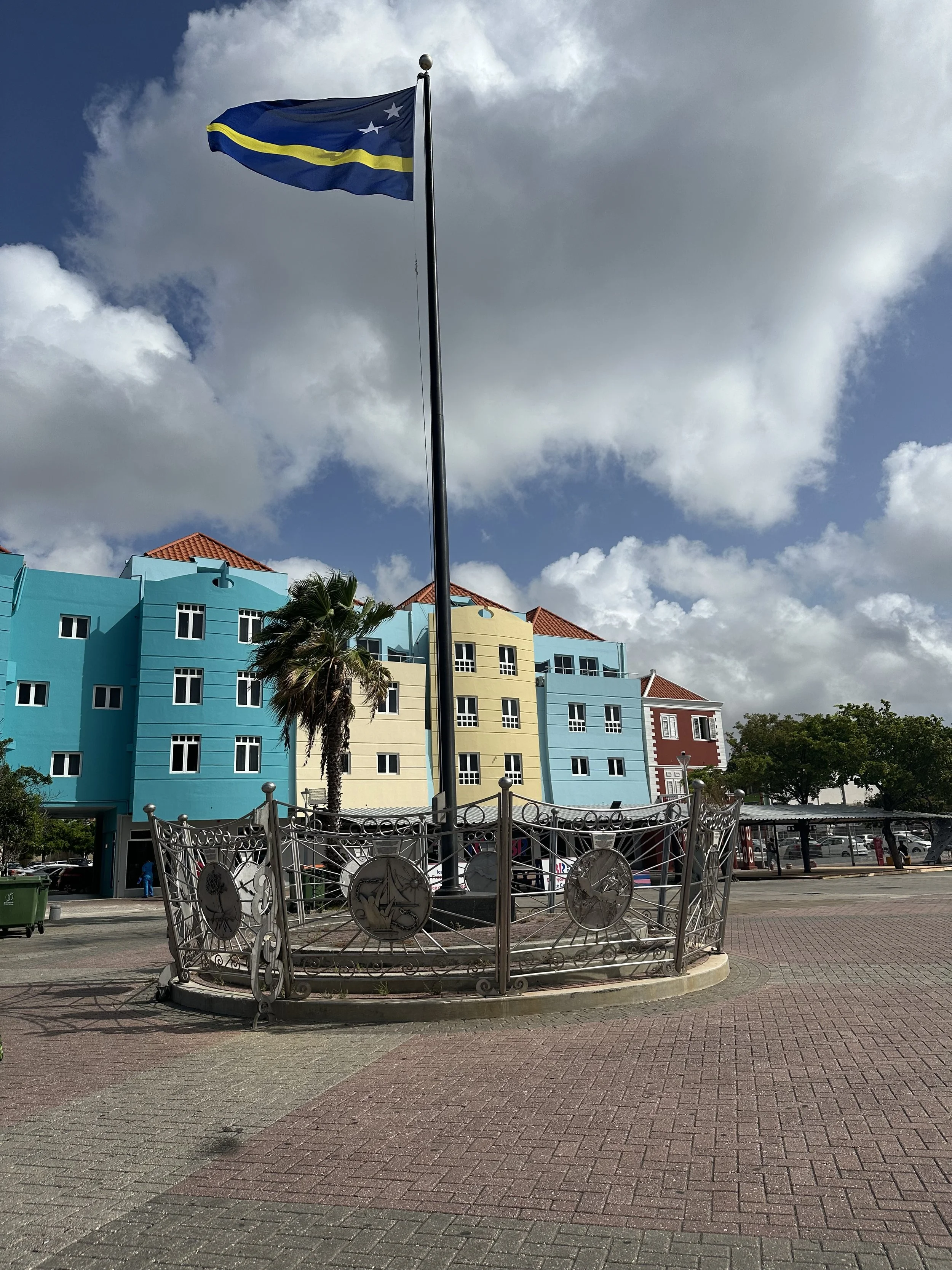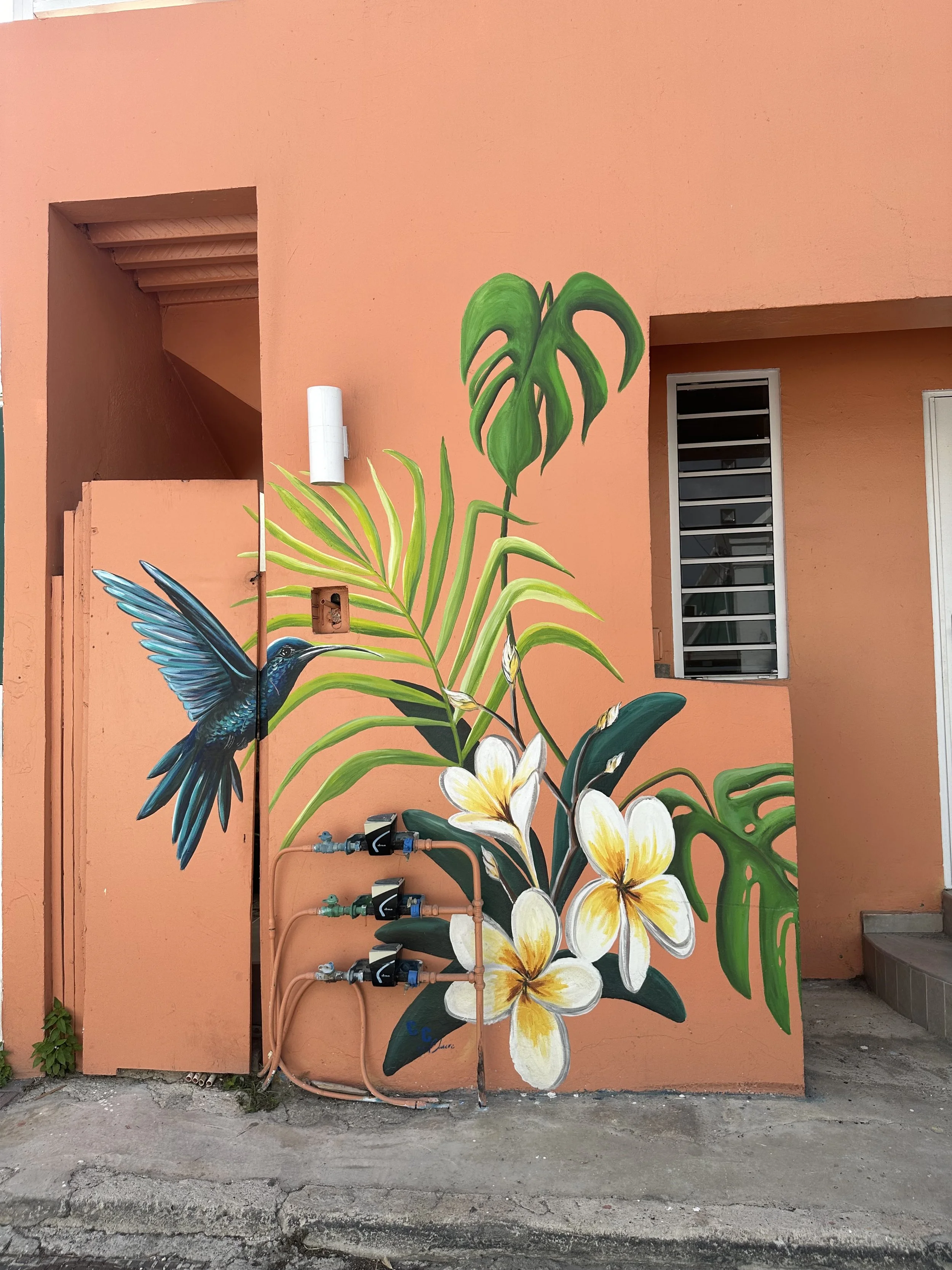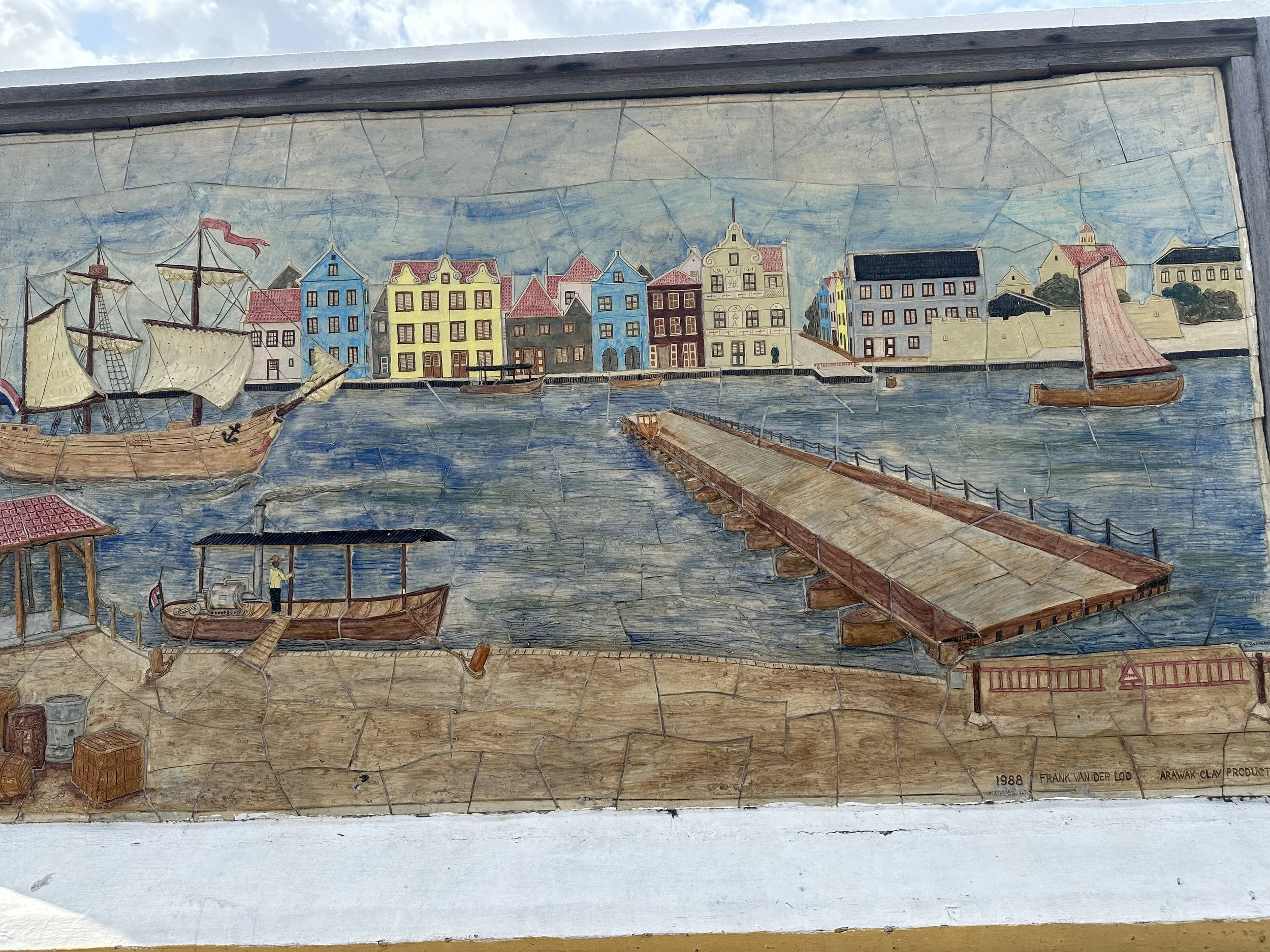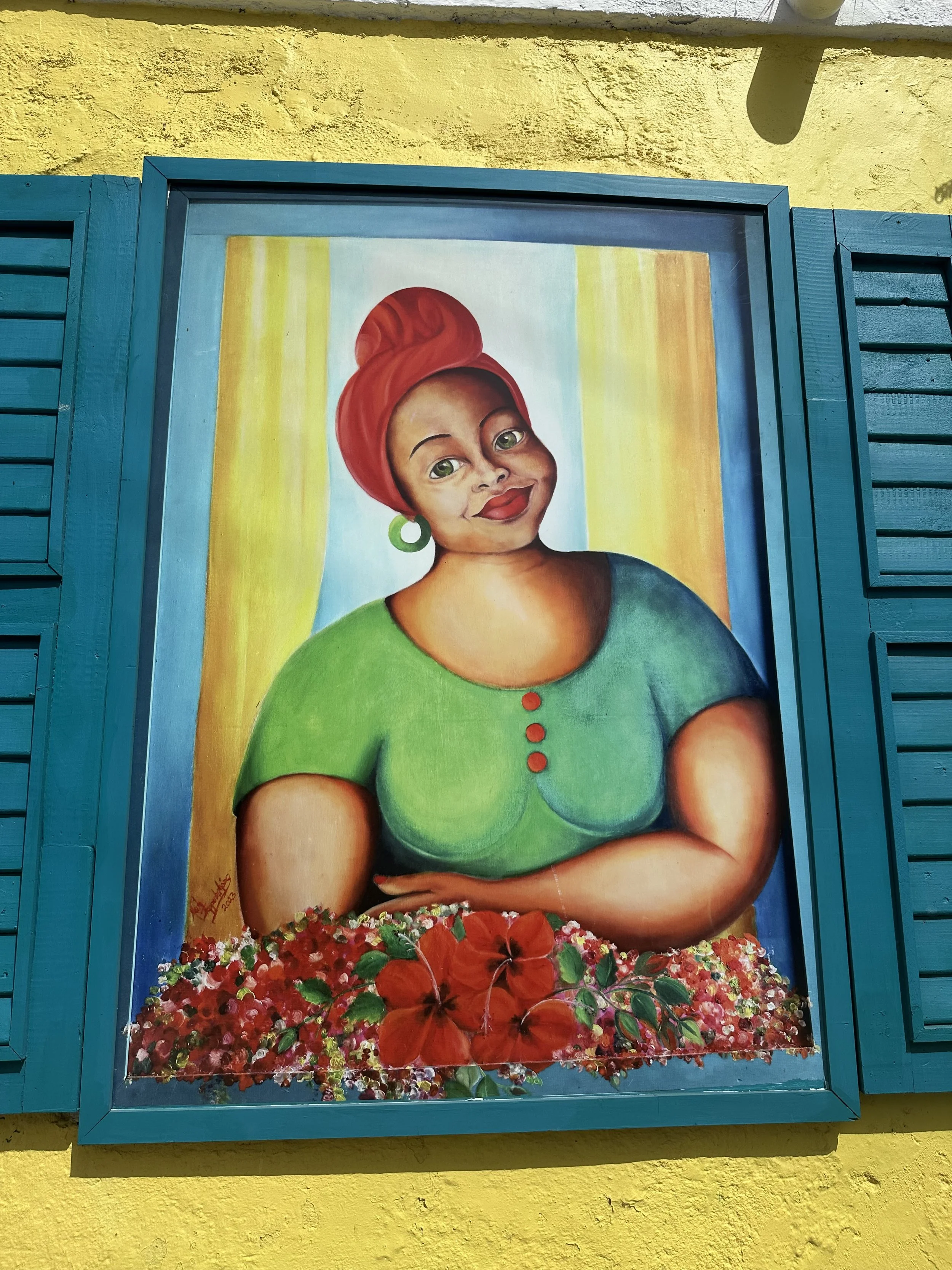 Our walking tour took us through the town of Otrabanda, known as the “other side” of the Saint Anna Bay. The street art is electrifying! The land is arid, with plant life living on the walls in vibrant paint colors! House numbers, street signs, and history are painted along the cement walls of the houses and buildings. Homes are colored in pastels of all shades. It felt like Harold (of Harold and his Magic Crayon) had arrived with an entire box of crayons to bring color to an otherwise colorless vista.